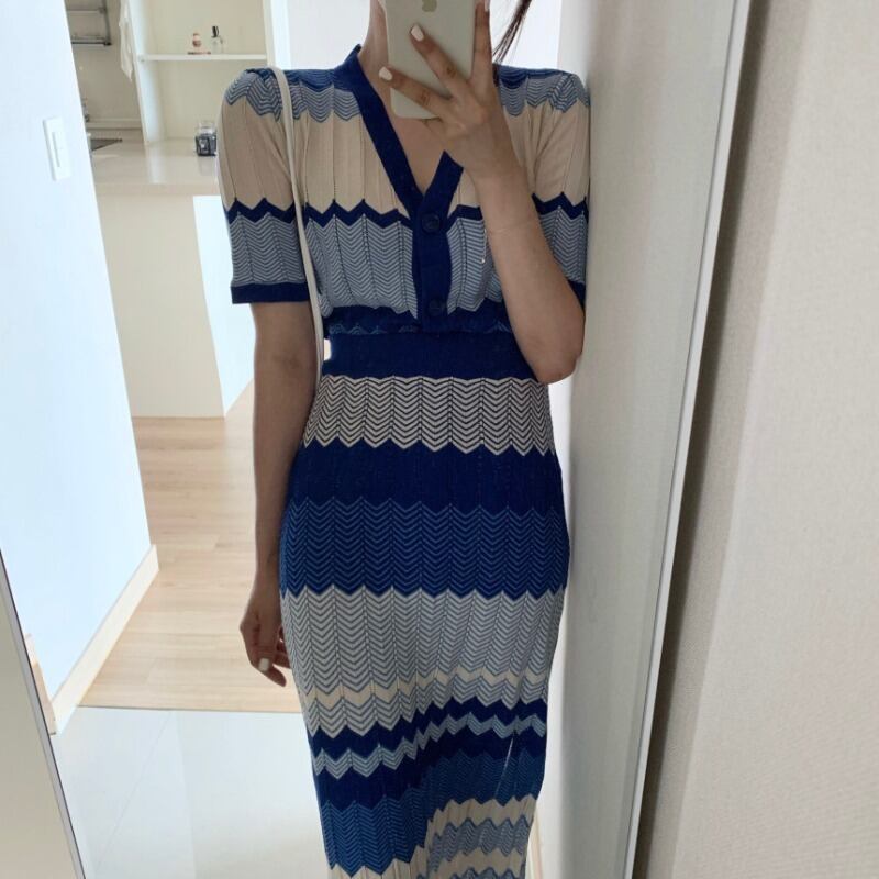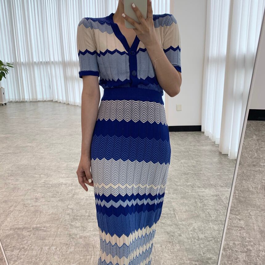 スタイルニットカーディガンハイウェストプリーツスカート レディース ステッチ 韓国婦人67684213183