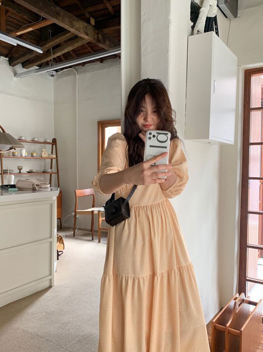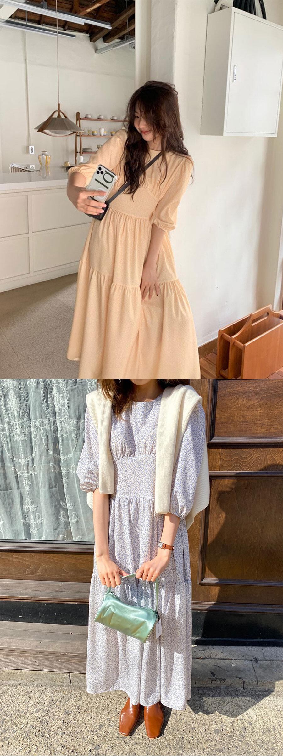 ラウンドネックスリーブハイウェストウェスト薄手フローラルシフォンドレス 花柄 Oネック 韓国婦人4641534490