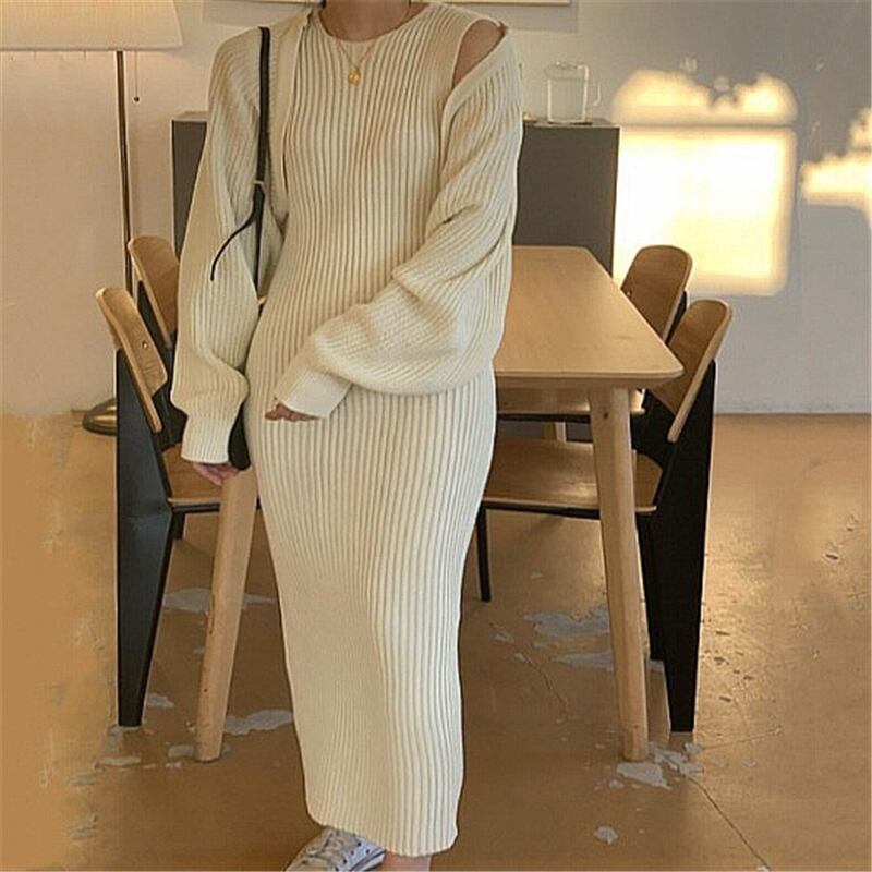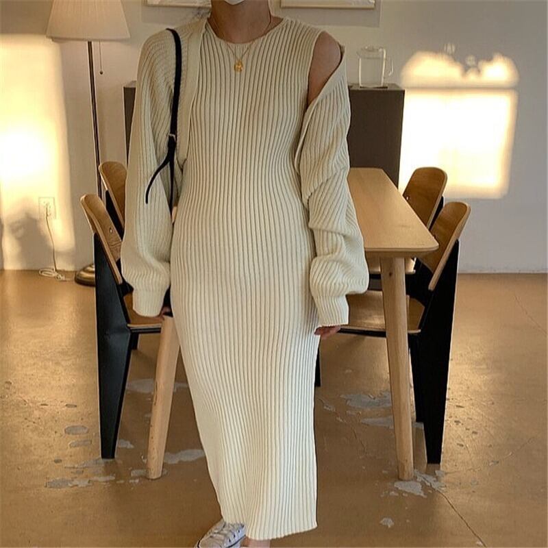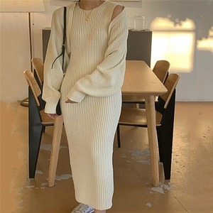 スプリングニットジャケット ドレス レッド ロング 春物 韓国婦人78668261519