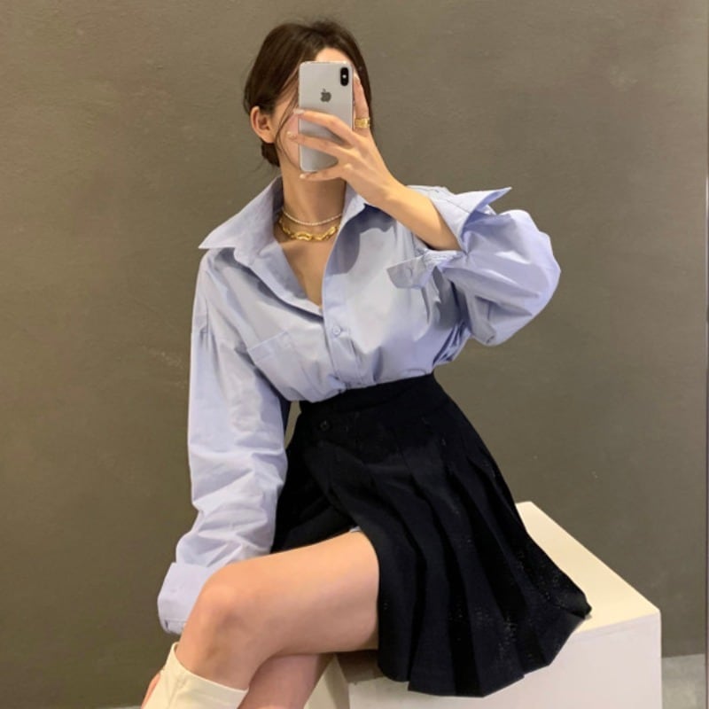 色:白のシャツ,青いシャツ,グレースカートS,グレースカートM,黒スカートS,黒スカートM