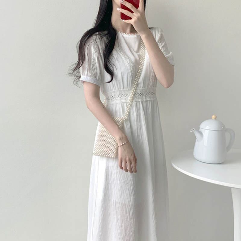 サマーウェスト薄手スカート ドレス 大人ガーリー スウィート キュート カジュアル 夏物 フラワーデザイン 韓国婦人2567209295