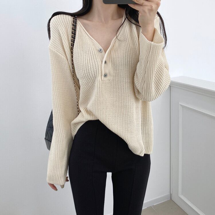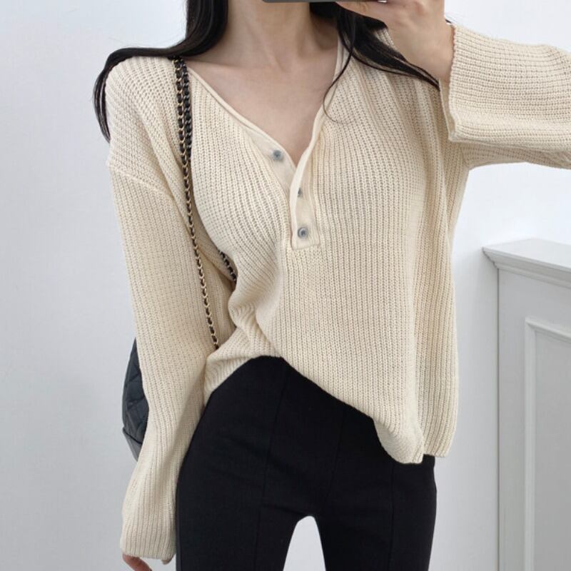 Vネック薄手ニットセーター 韓国婦人12898107253