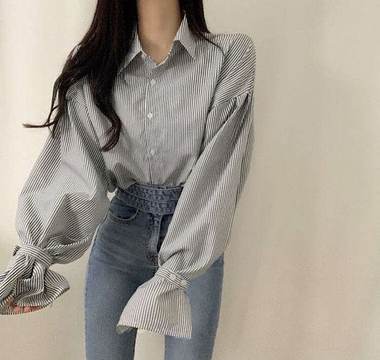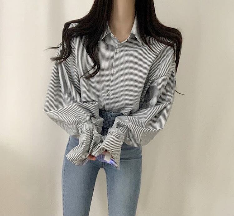 ストライプシャツ レディーススプリング薄手ルーズ ロング 春物 韓国婦人22948934443