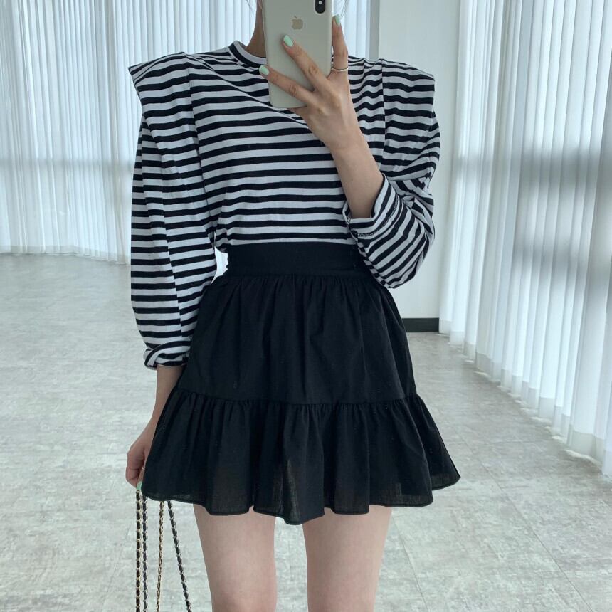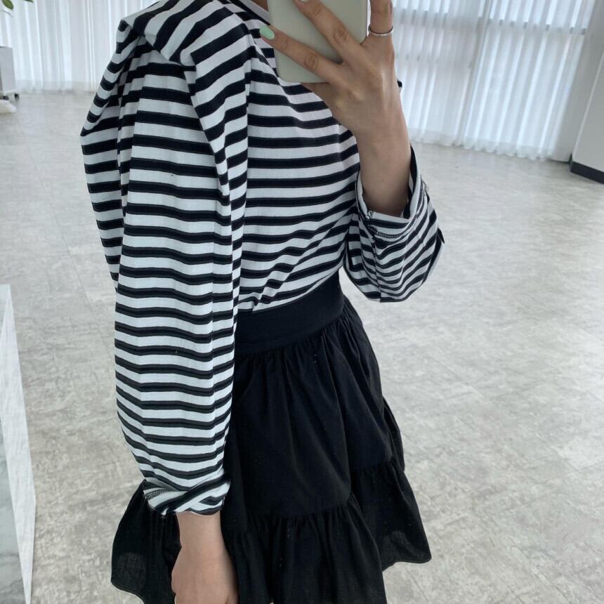 スプリングストライプTシャツ ハイウェストウェストスカート レッド ロング 春物 韓国婦人61234773003