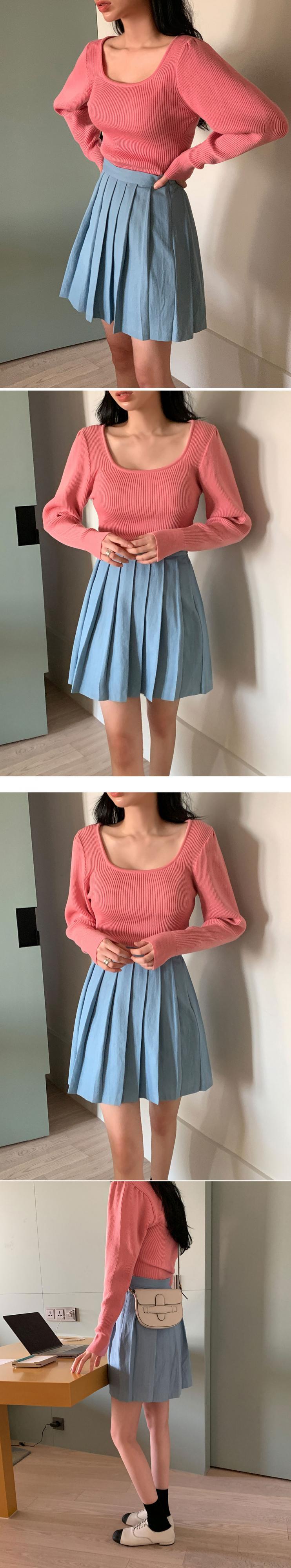プリーツスカート セーター 薄手レッド ロング 韓国婦人20783069364