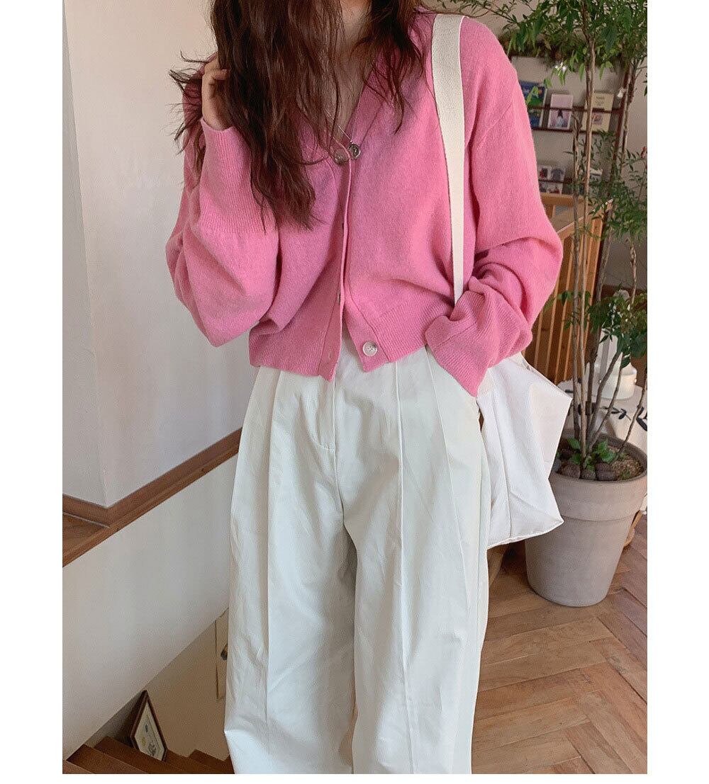 スプリングスタイルルーズVネックニットカーディガンショート ロング 春物 韓国婦人70694283579