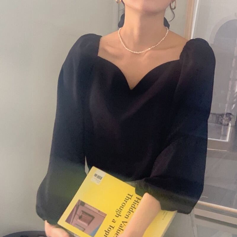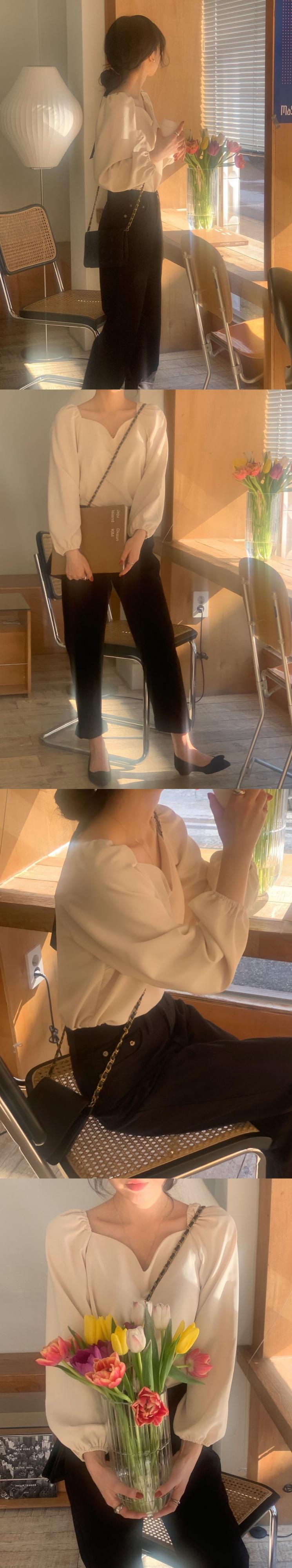 カラールーズスリーブシャツ ソリッド シフォンブラウス レディース ソリッドカラー 韓国婦人78928503031