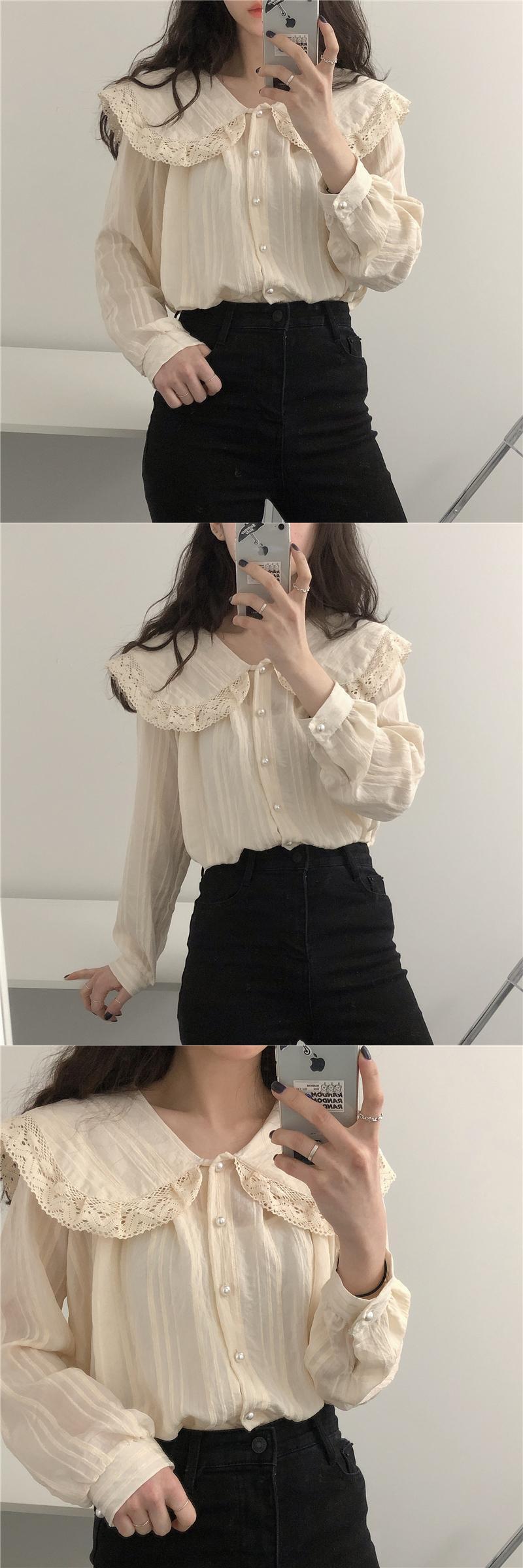 スタイルシャツ スプリングドレス スタンダードレースカラー ロング レトロ 春物 韓国婦人69795421412