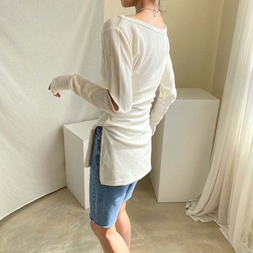ラウンドネックスリムブラウス レディース ロング Oネック 韓国婦人9019352291
