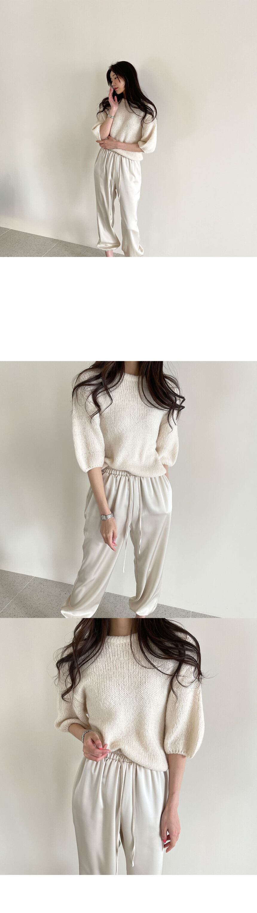 スプリングカラールーズラウンドネックスリーブニットセーター レディース 大人ガーリー スウィート キュート カジュアル 春物 Oネック 韓国婦人70805381717
