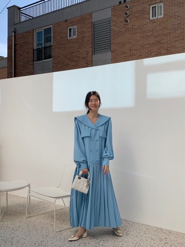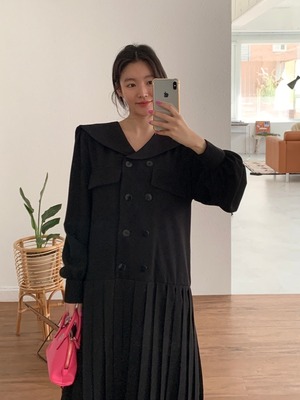 スプリングルーズプリーツドレス スタンダードブレストアンクルロングスカート レトロ 大人ガーリー スウィート キュート カジュアル 春物 韓国婦人16894596409
