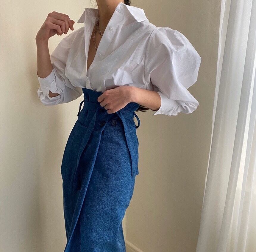 スリーブシャツ ハイウェストウェストスカート 薄手ロングレディース 韓国婦人9898329234