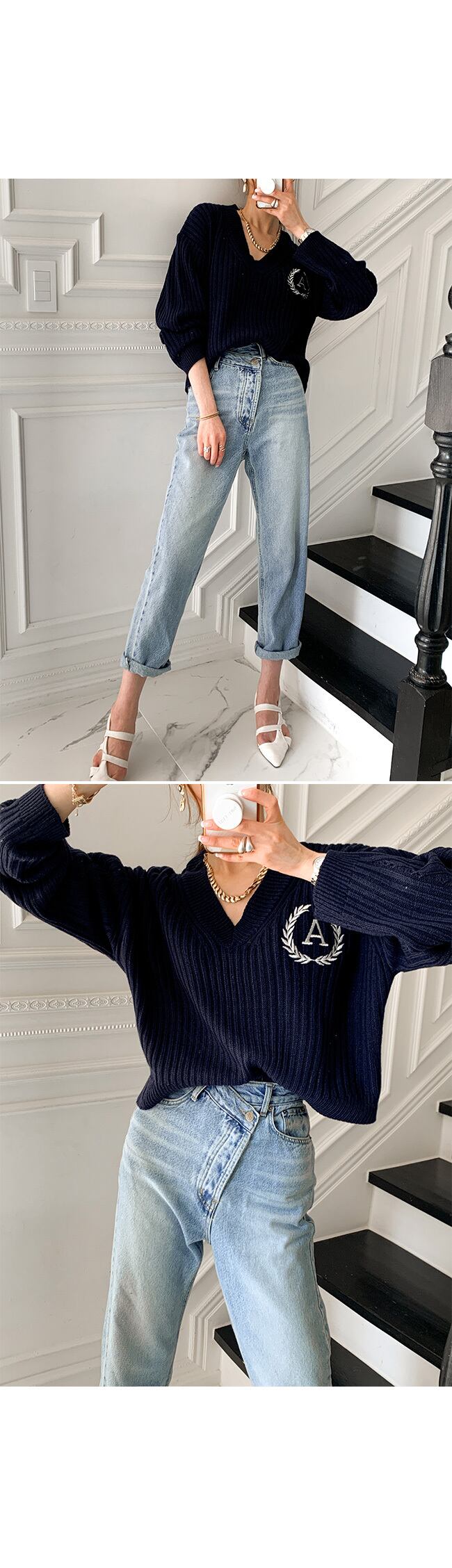 Vネックニットセーター スプリングルーズフードジャケット 春物 韓国婦人68216171597