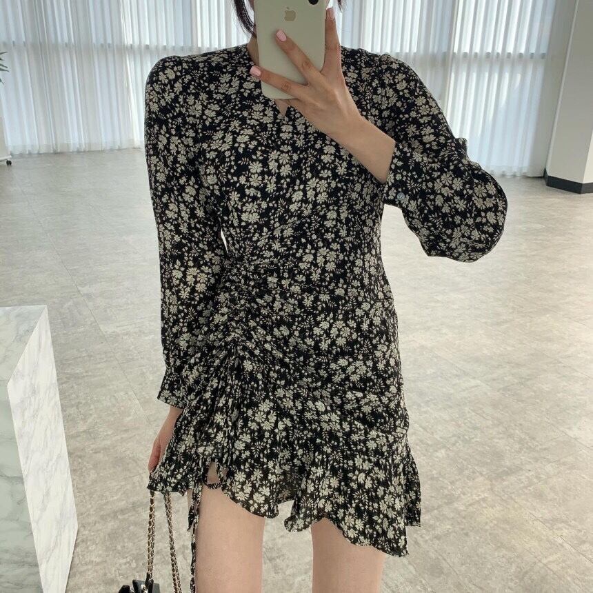 スプリングギャザーフローラルドレス 春物 花柄 韓国婦人24925765010