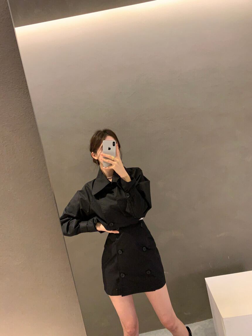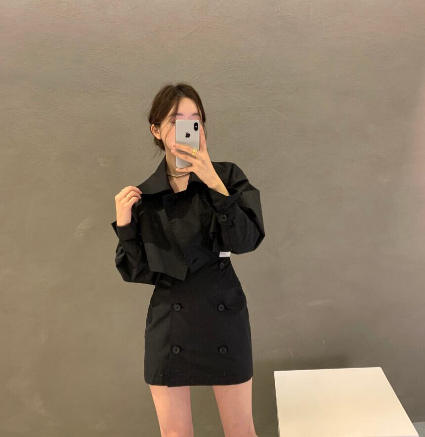 レッドショートコート ハイウェストダブルブレストスカート 韓国婦人98483067161