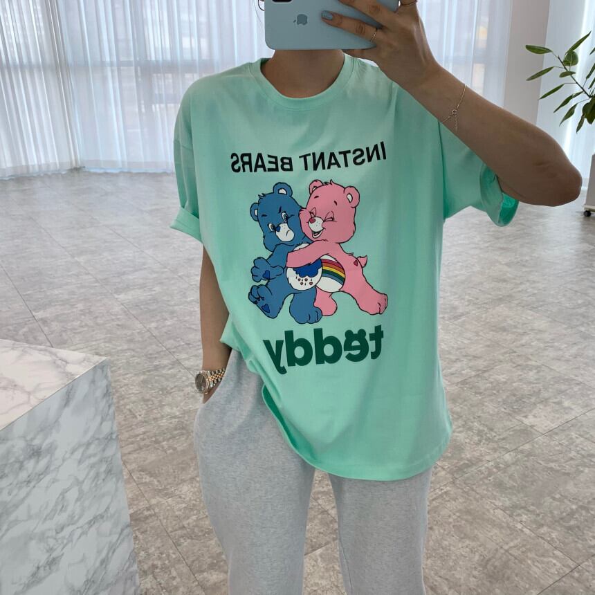 Tシャツ ルーズショート 半袖 ハーフスリーブ 韓国婦人79982904910