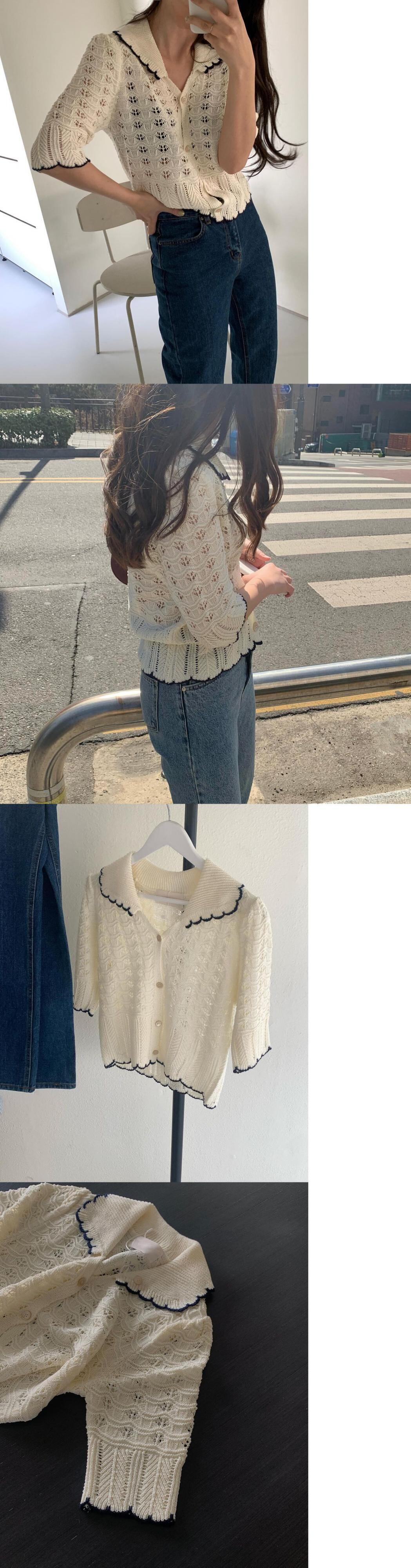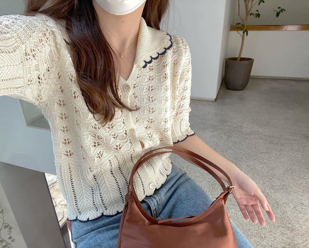 スプリングサマースタンダードカラー薄手ショートVネックニットシャツ レディース レトロ 大人ガーリー スウィート キュート カジュアル 春物 夏物 韓国婦人34617046493