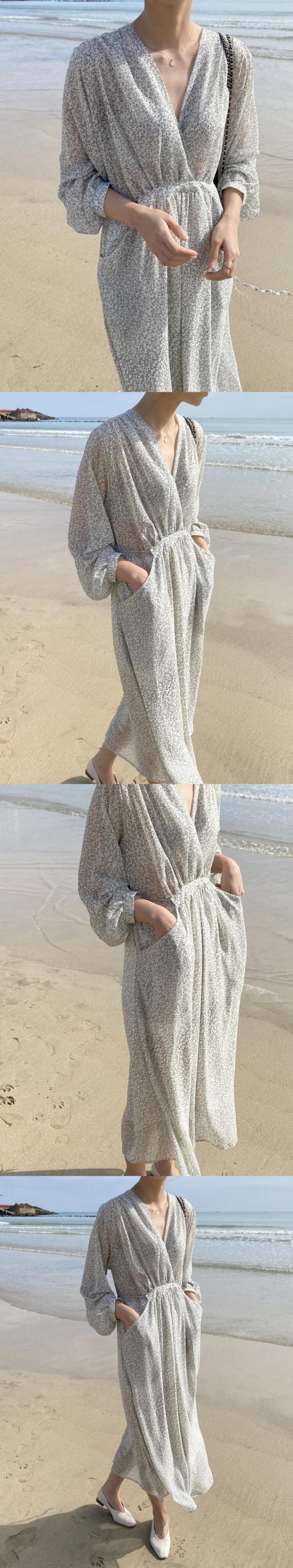 フローラルスカート サマーVネックスリムロングルーズシフォンドレス レース 大人ガーリー スウィート キュート カジュアル 夏物 花柄 レースアップ 韓国婦人85187898563