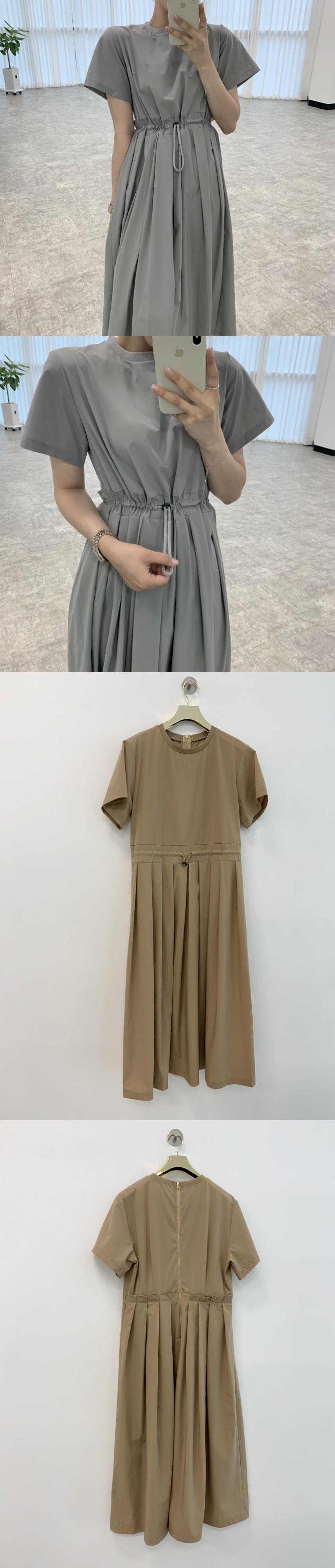 サマースタイルラウンドネックロングスカート ギャザーウェストプリーツドレス レディース 夏物 Oネック 韓国婦人52693227253