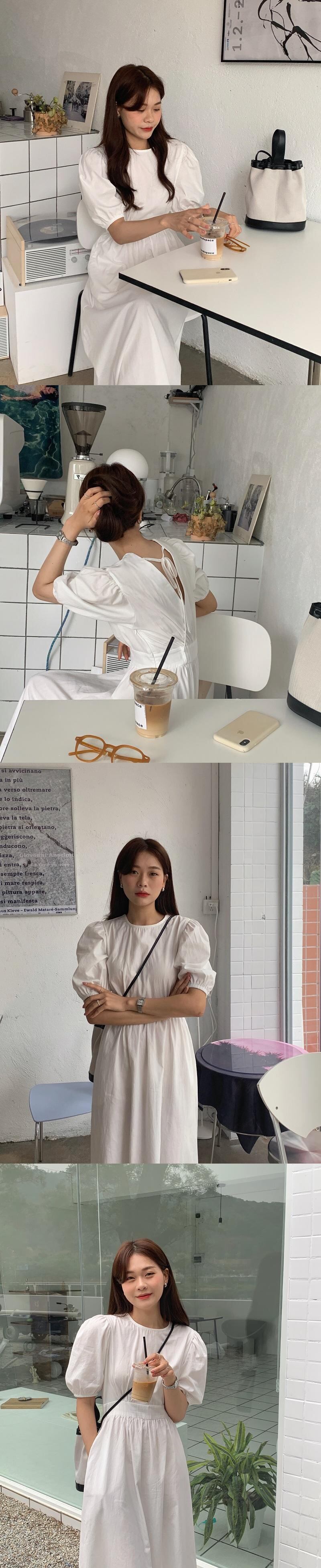 スタンダードウェストバックVネックスリーブホワイトドレス サマー レトロ レース 夏物 レースアップ 韓国婦人63214162278