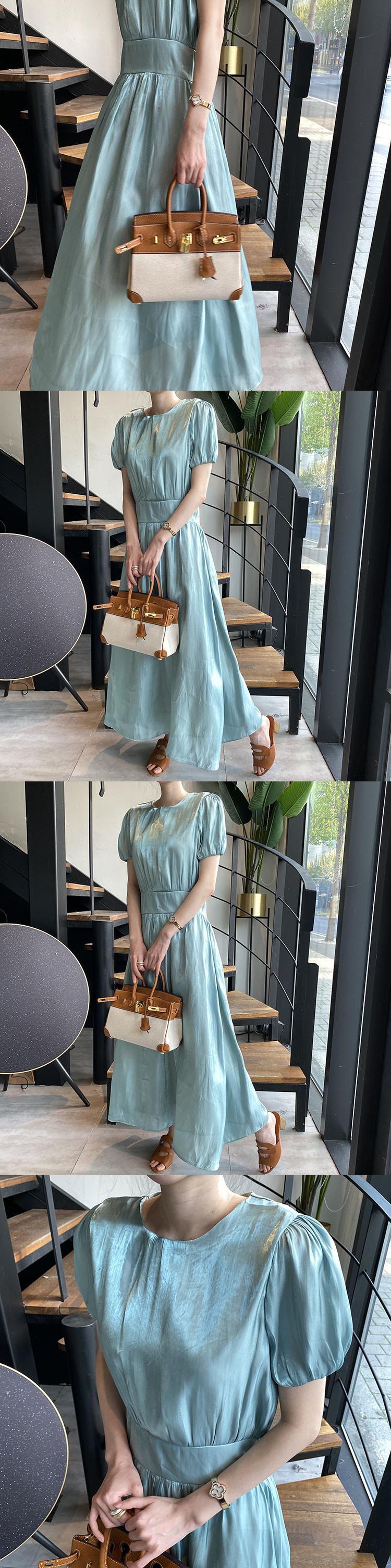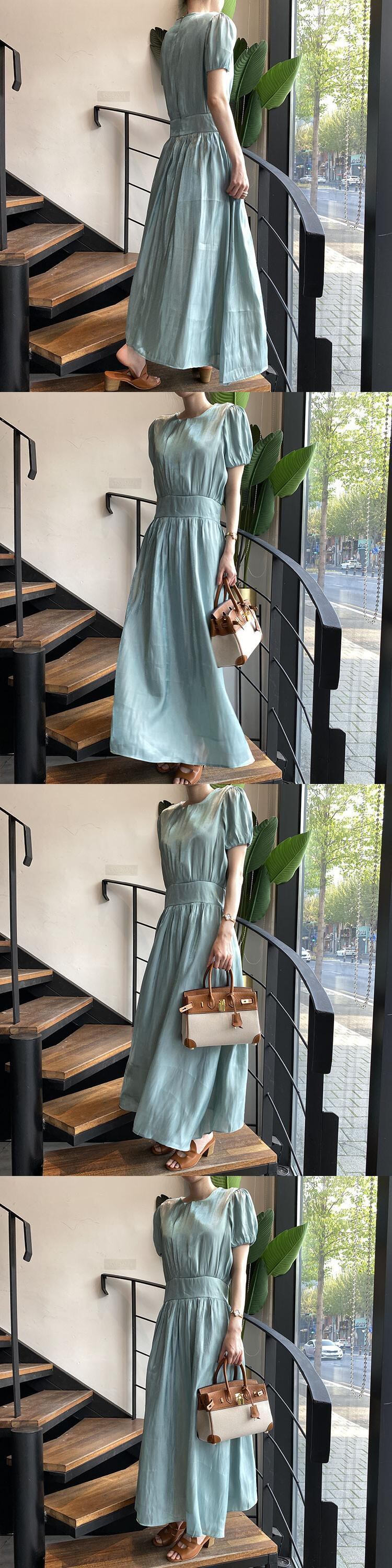 スタンダードスリーブドレス サマーラウンドネックウェストロングスカート レトロ 大人ガーリー スウィート キュート カジュアル エレガント 夏物 Oネック 韓国婦人99527129603