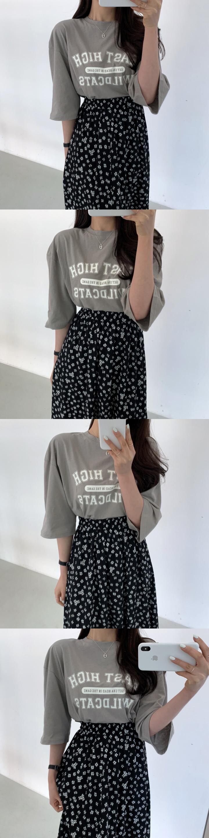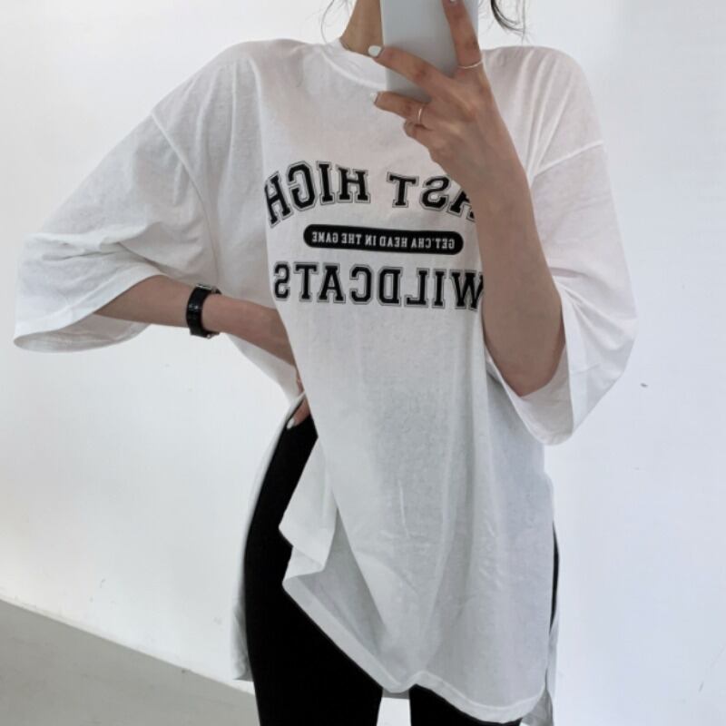 サマーラウンドネックルーズプリントサイドスリットTシャツ トップス 夏物 Oネック 韓国婦人90560684991