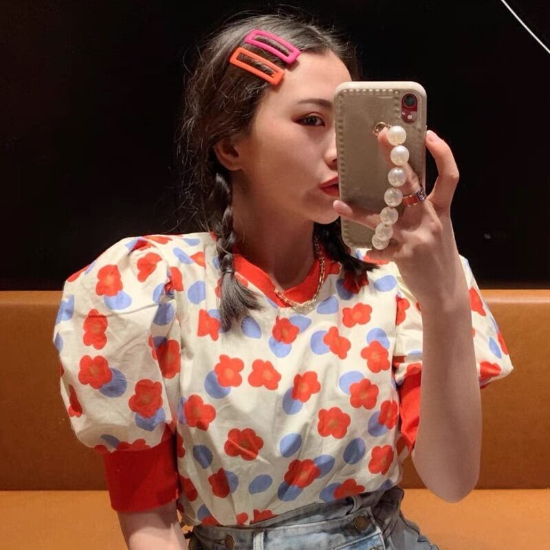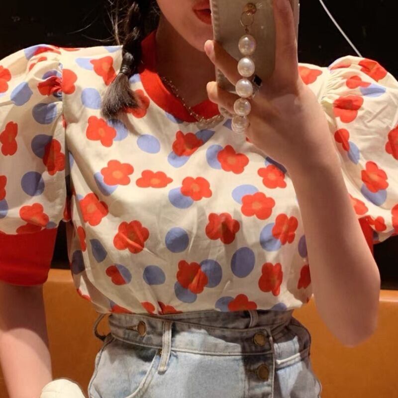 スタイルフローラルスリーブシャツ シフォンサマー 大人ガーリー スウィート キュート カジュアル 夏物 花柄 韓国婦人83323266431