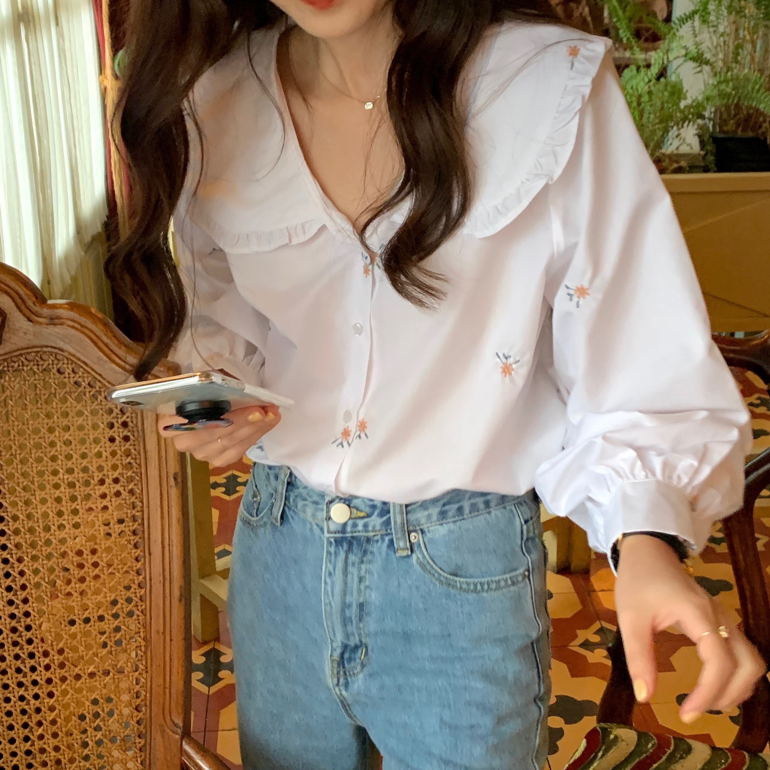 スプリングトップス カラールーズフローラルシャツ ロング 春物 花柄 韓国婦人83506974748