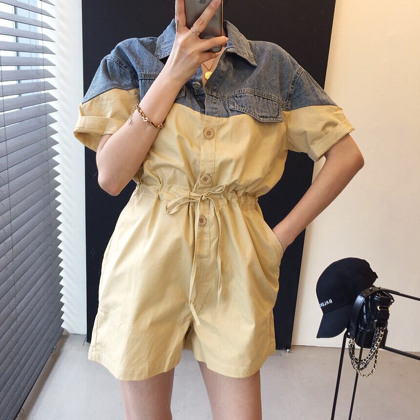 ジャンプスーツ オールインワン サマースタンダードウェストルーズハイウェストワンピースパンツ ショーツ レトロ 夏物 ブルマー ステッチ 韓国婦人27267946751