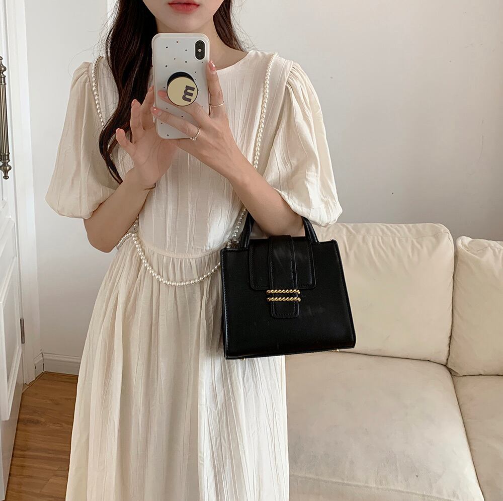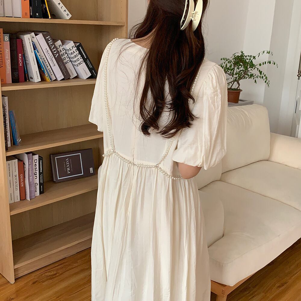 ロングスカート サマースタンダードスリーブドレス パールチェーン レトロ 夏物 真珠 韓国婦人5732997430