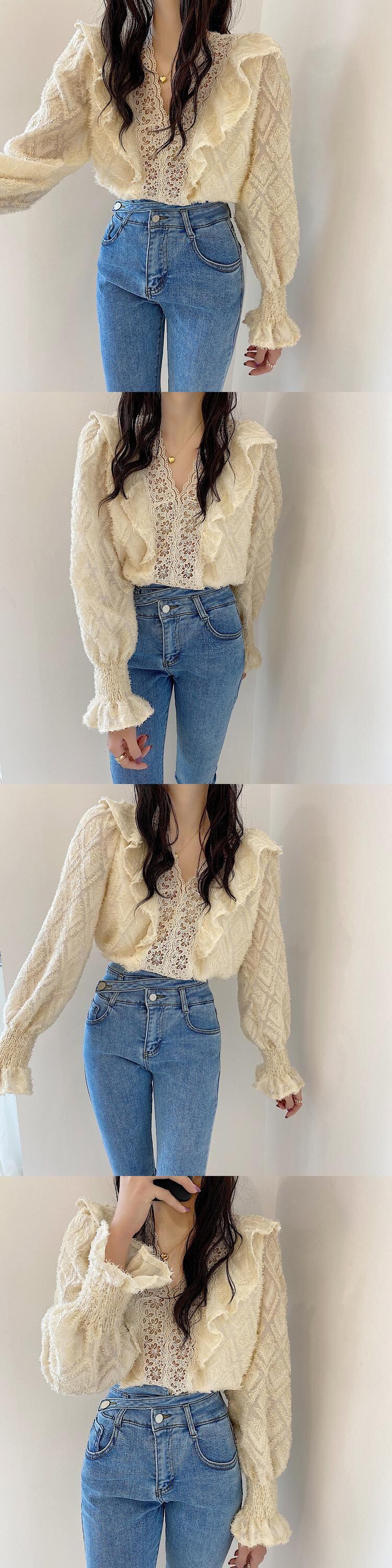 シャツ スプリングブラウス Vネックレースレディース 春物 韓国婦人4893822226