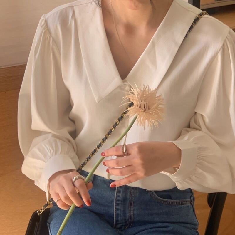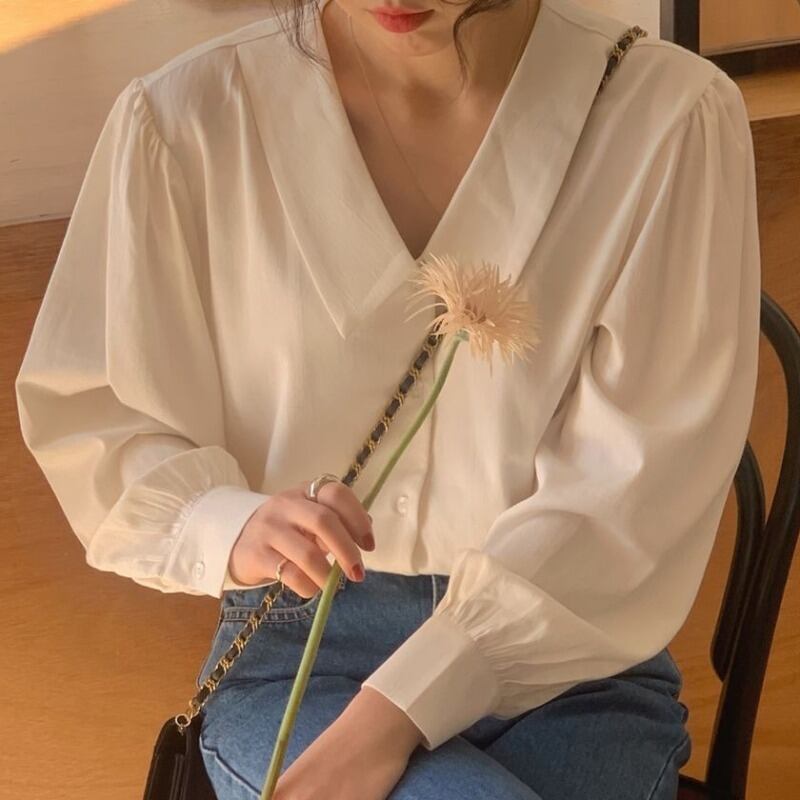 スプリングジャケット カラールーズスタンダードスリーブシャツ ランタンスリーブ レトロ 春物 韓国婦人70427853267