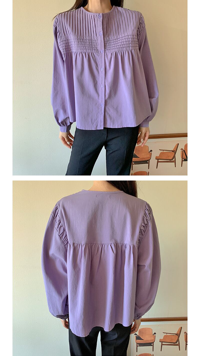スタンダードスタイルシャツ サマールーズスリーブラウンドネック レトロ 夏物 Oネック パープル 韓国婦人20532209522