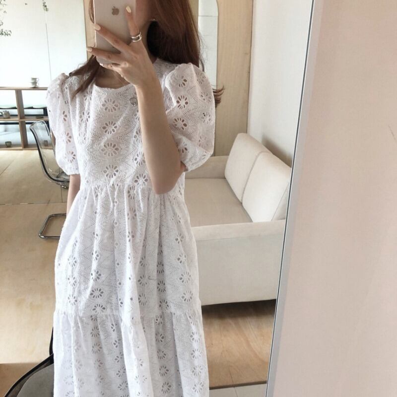 スカート サマーラウンドネックレーススリーブドレス ルーズ薄手ロング 夏物 Oネック 韓国婦人95811620968