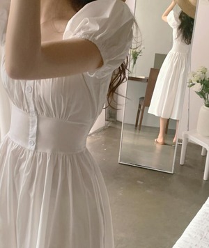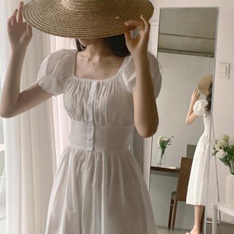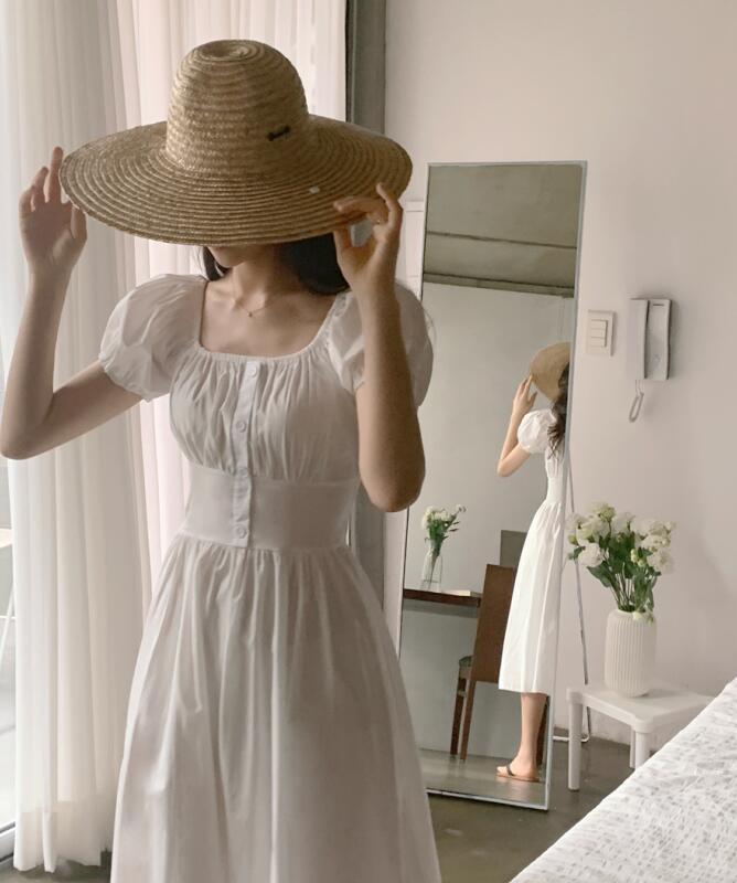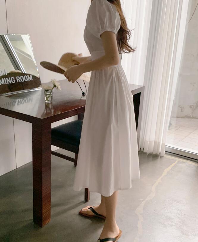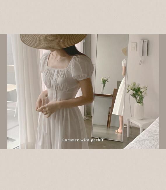 スリーブカラーホワイトドレス 薄手ロングスカート サマー 夏物 スクウェア 韓国婦人66460179706