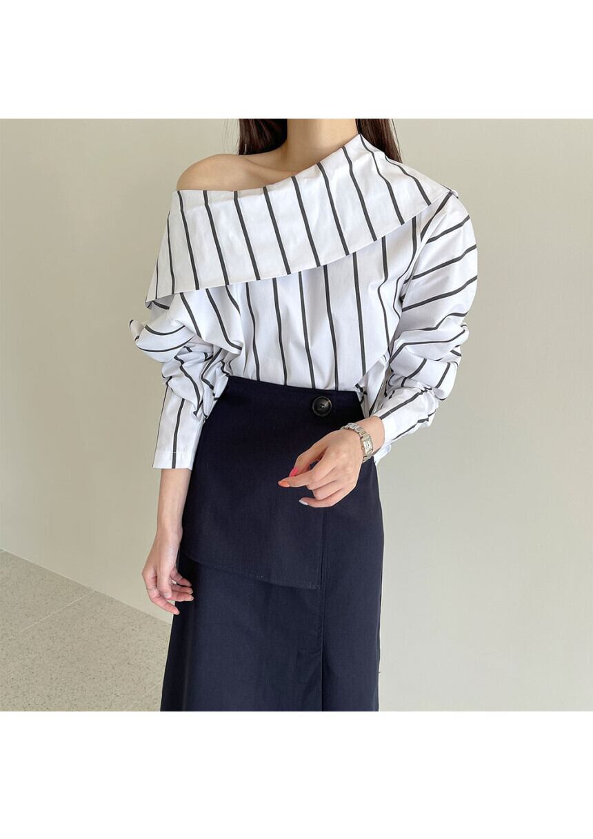 スプリングバックスリーブストライプボタンシャツ 春物 韓国婦人7202419870