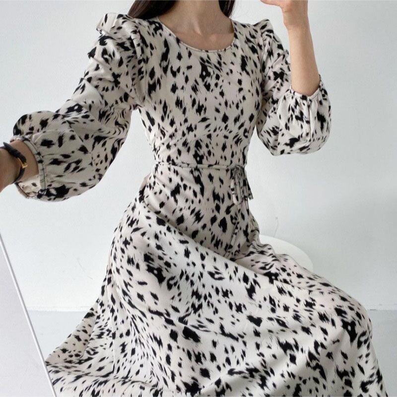 スタイルレオパードラウンドネックドレス スプリングウェストレーススカート 春物 Oネック 韓国婦人44529755010