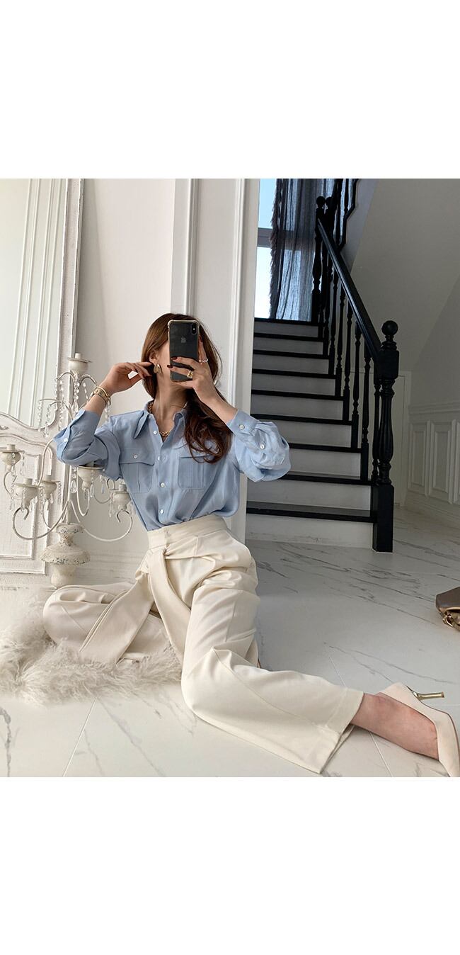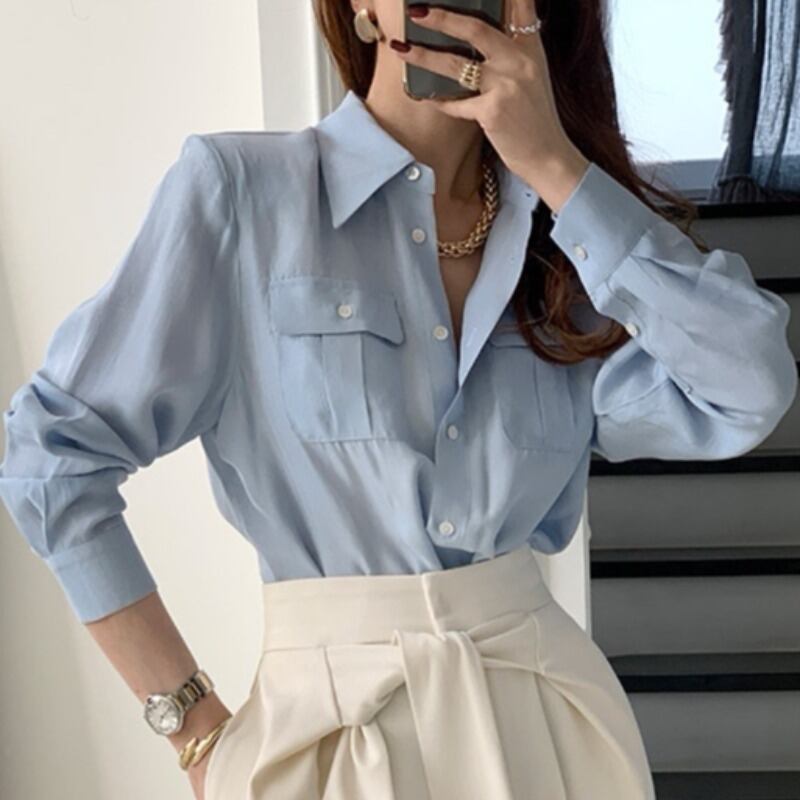 スプリングシャツ ルーズ薄手トップス レディース 春物 韓国婦人68877736574
