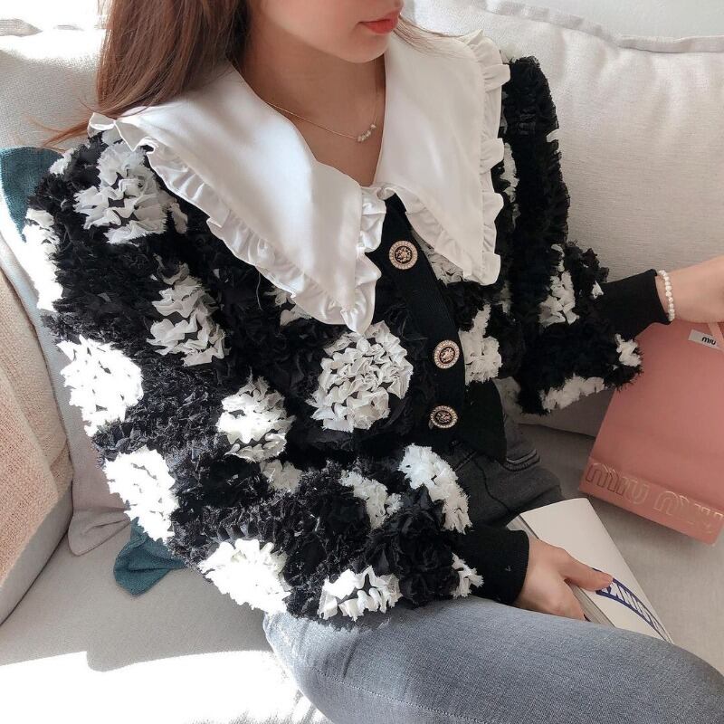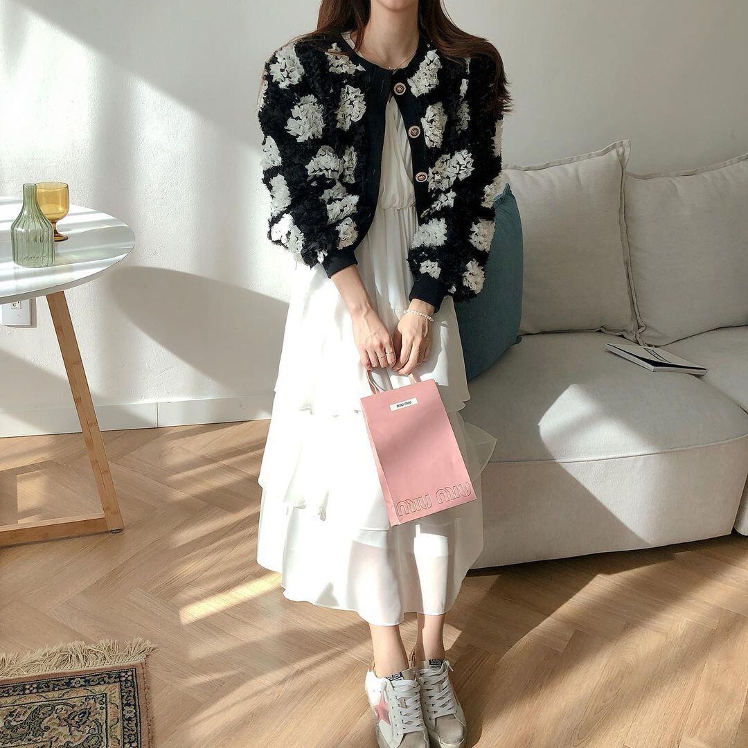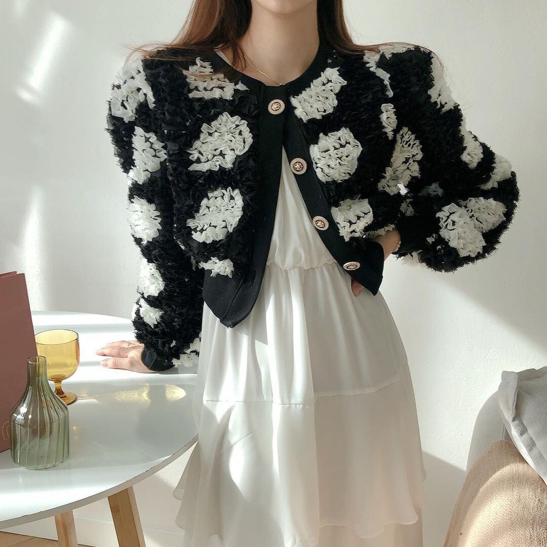 ジャケット ショートスプリングオータムスタンダードFlowerデザイン スリーブカーディガントップス レトロ 春物 秋物 フラワーデザイン 韓国婦人12733468342