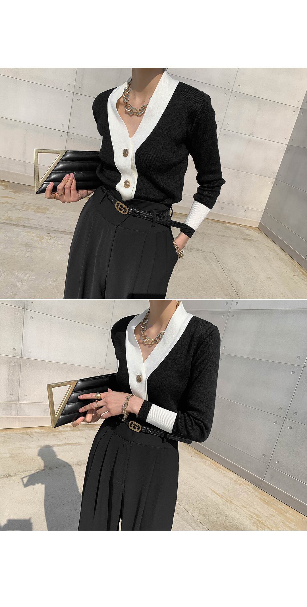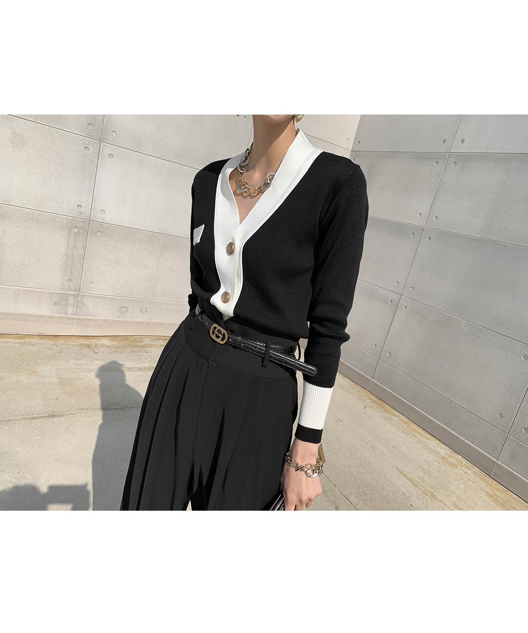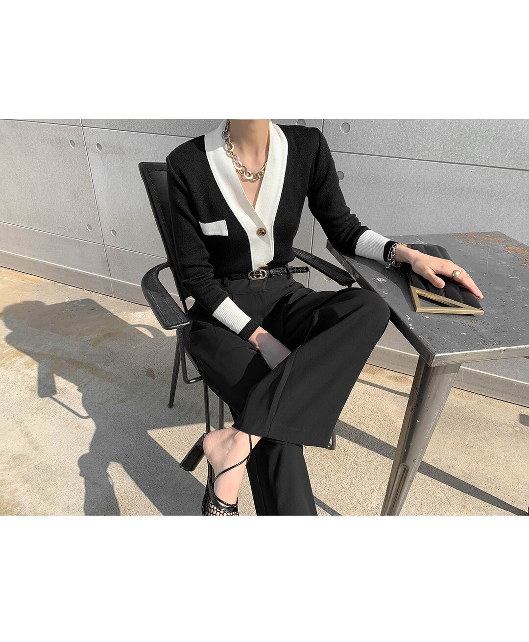 スタンダードスプリングオータムカラーニットカーディガン薄手ブラックジャケット ロング レトロ 春物 秋物 韓国婦人32110854598