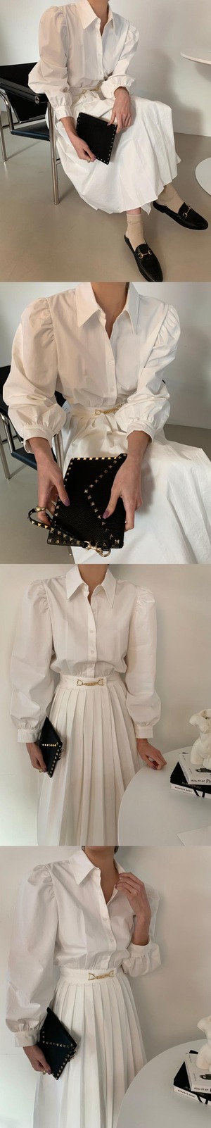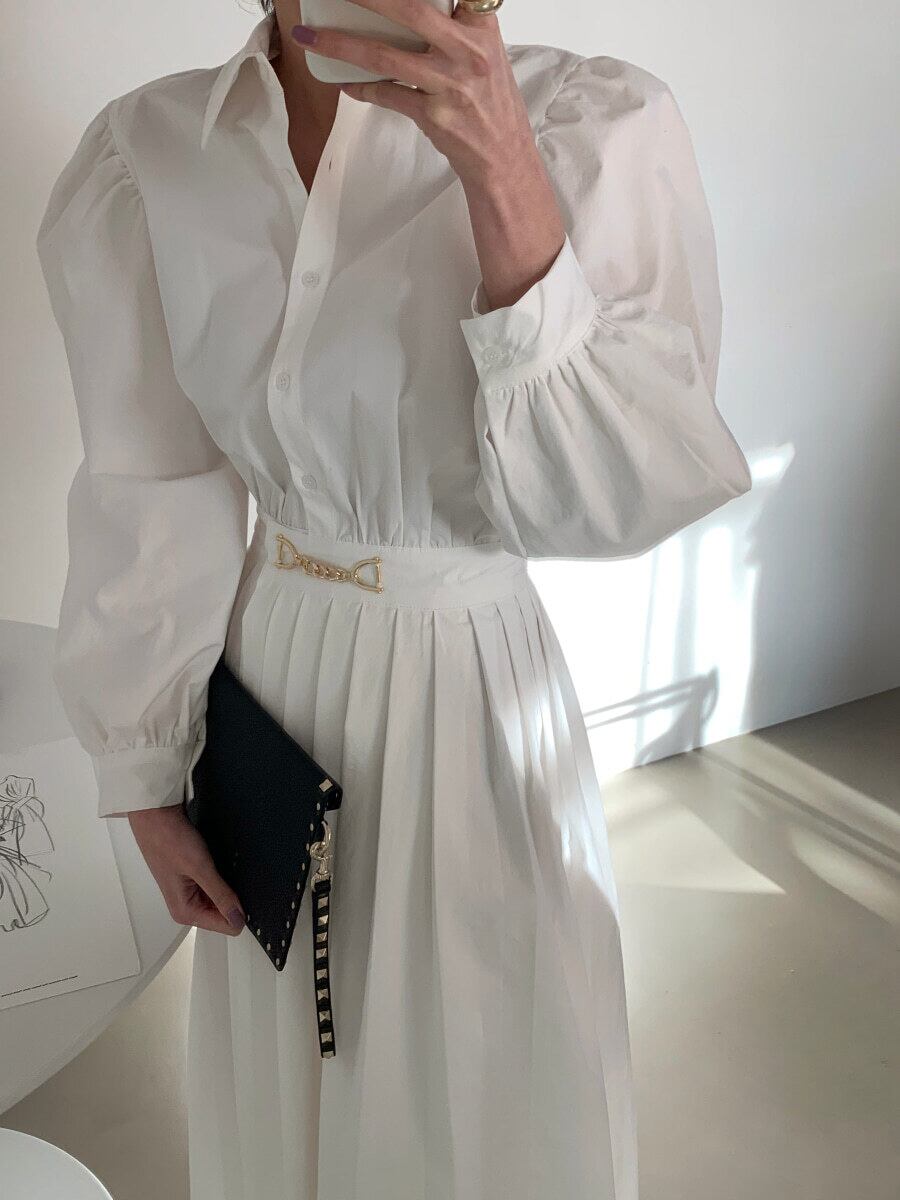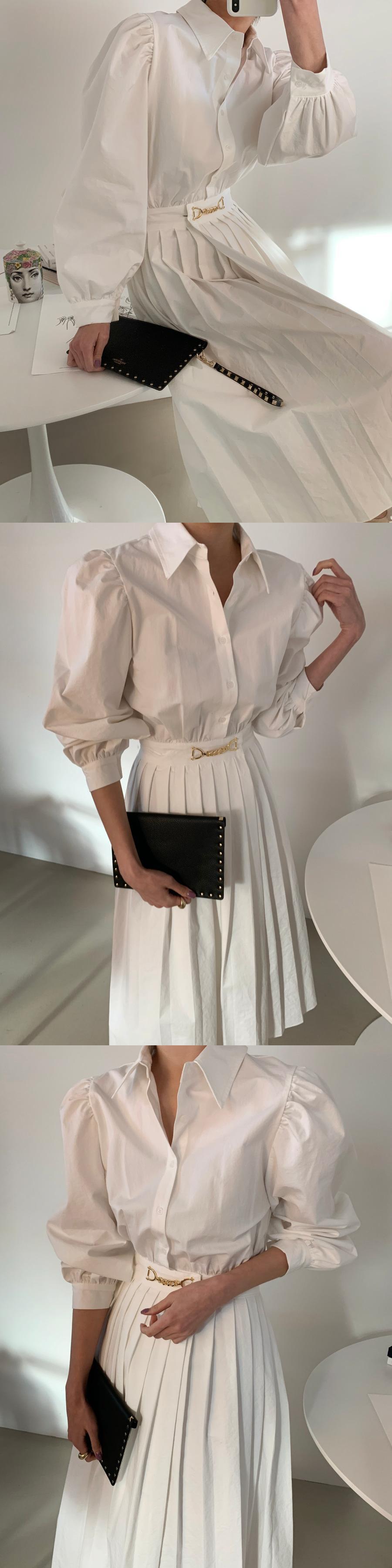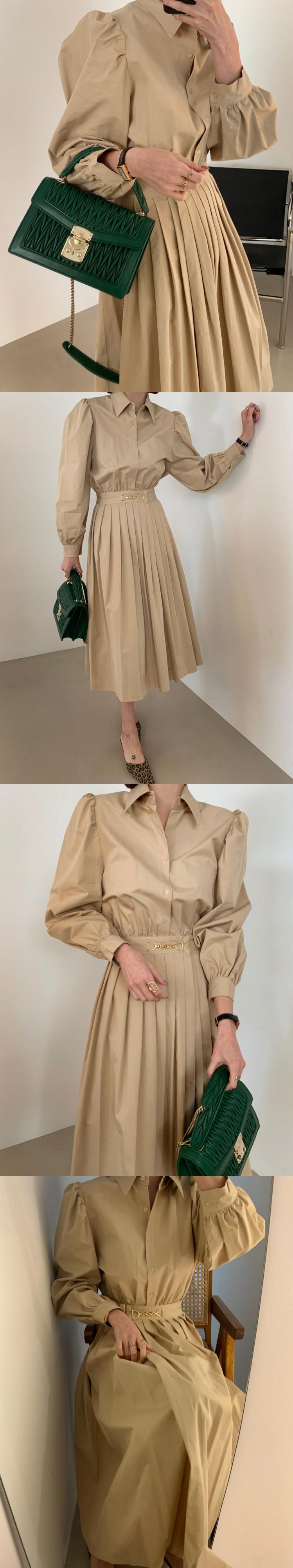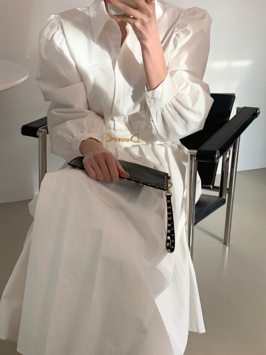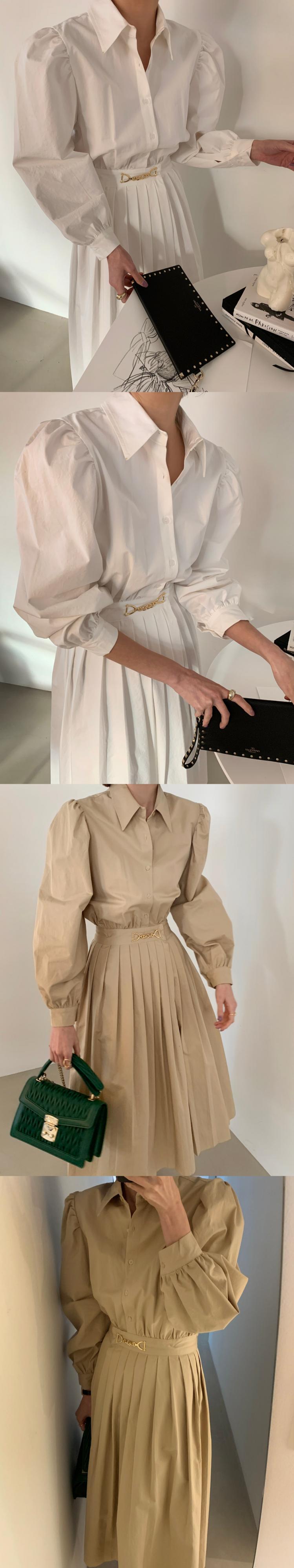 ウェストロングスカート スプリングオータムプリーツシャツ ドレス 春物 秋物 韓国婦人68885715994