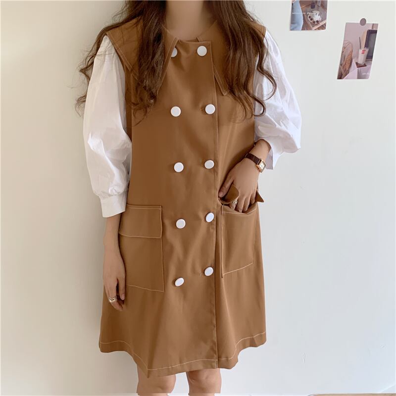スリーブカラードレス オータムスタイルルーズダブルブレスト 秋物 韓国婦人18259127438