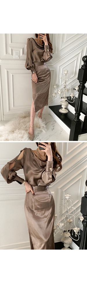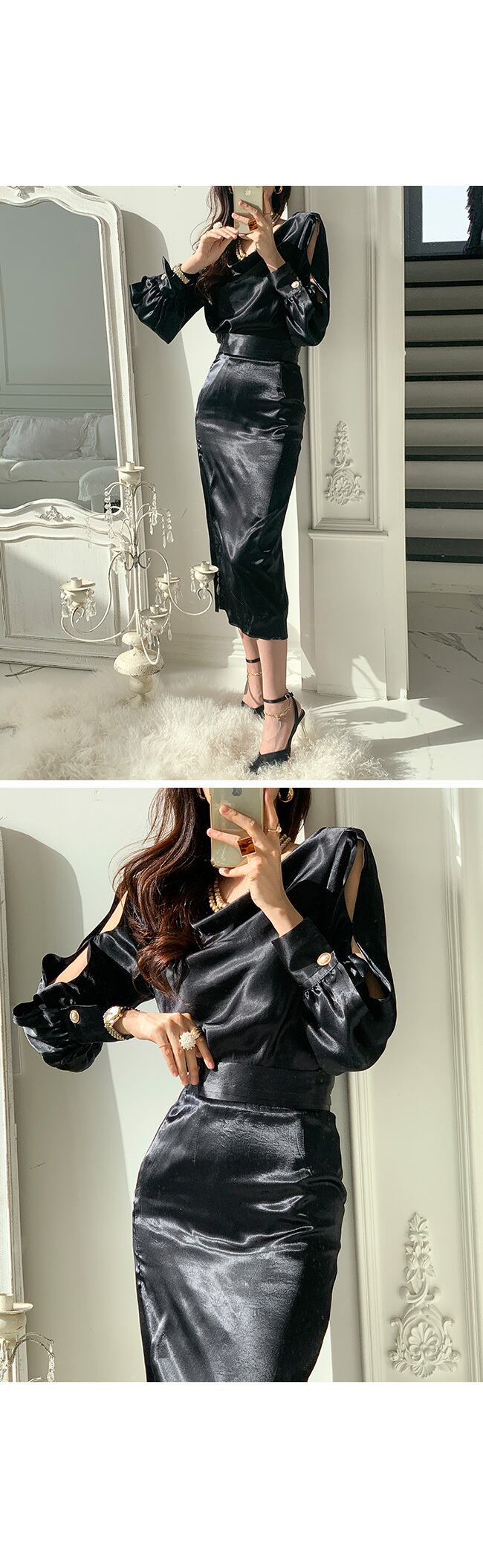 スプリングオータムルーズ薄手トップス ハイウェストウェストロングスカート 春物 秋物 韓国婦人42473763221