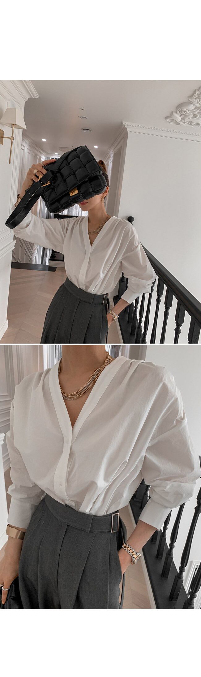 Vネックシャツ レディースルーズ薄手ブラウス スプリング ロング 春物 韓国婦人16915524487