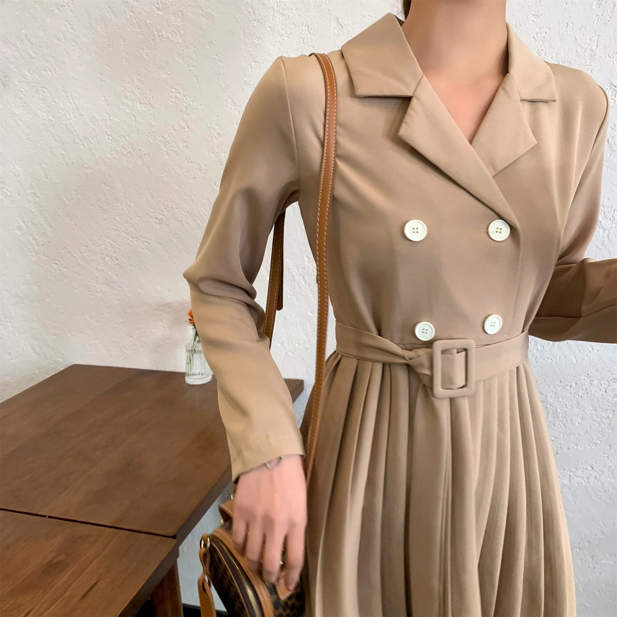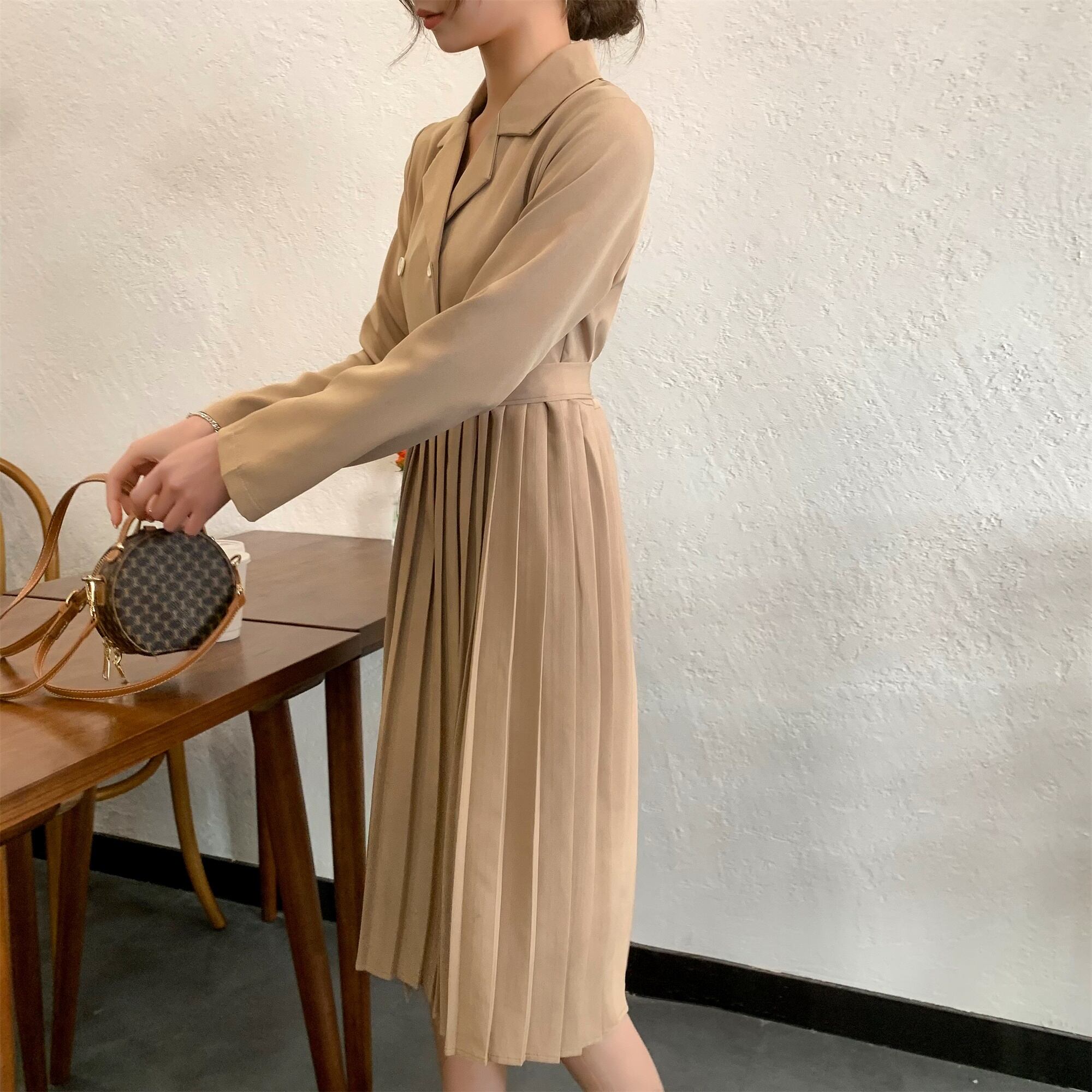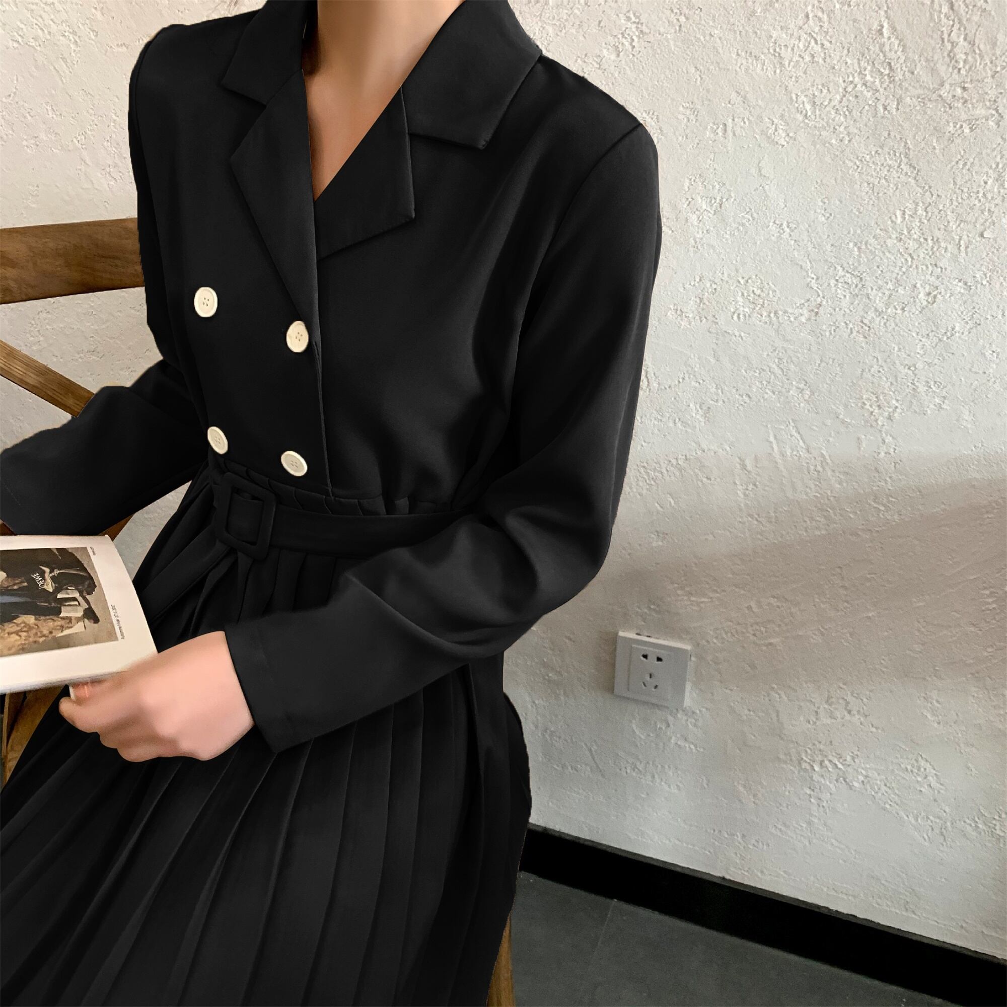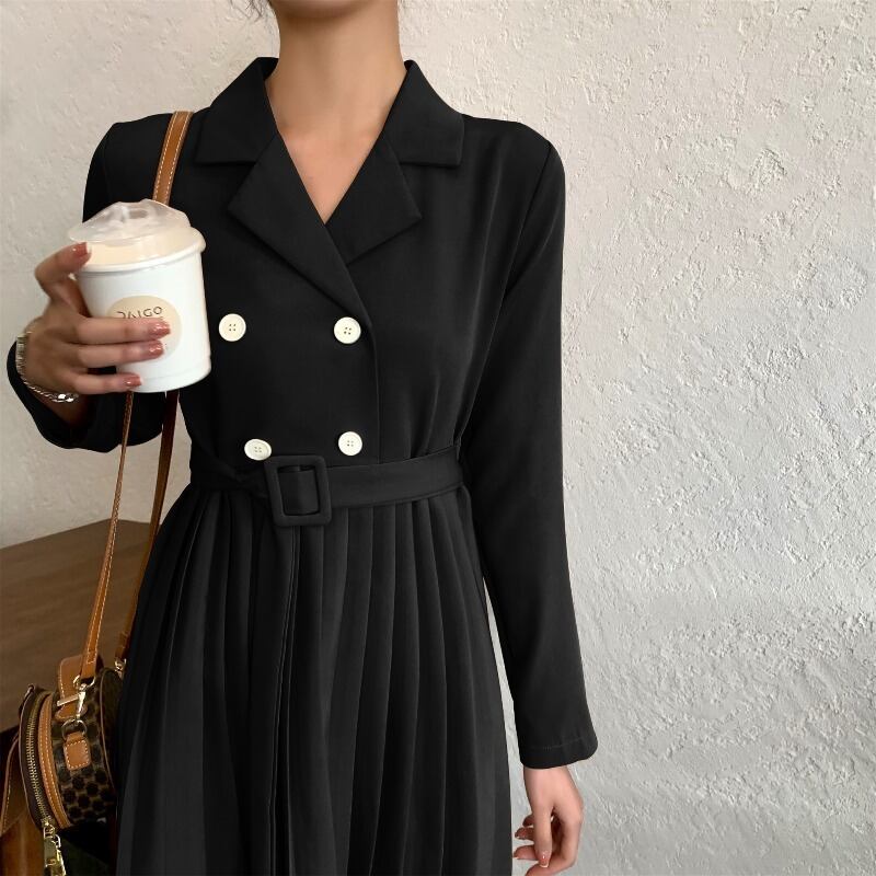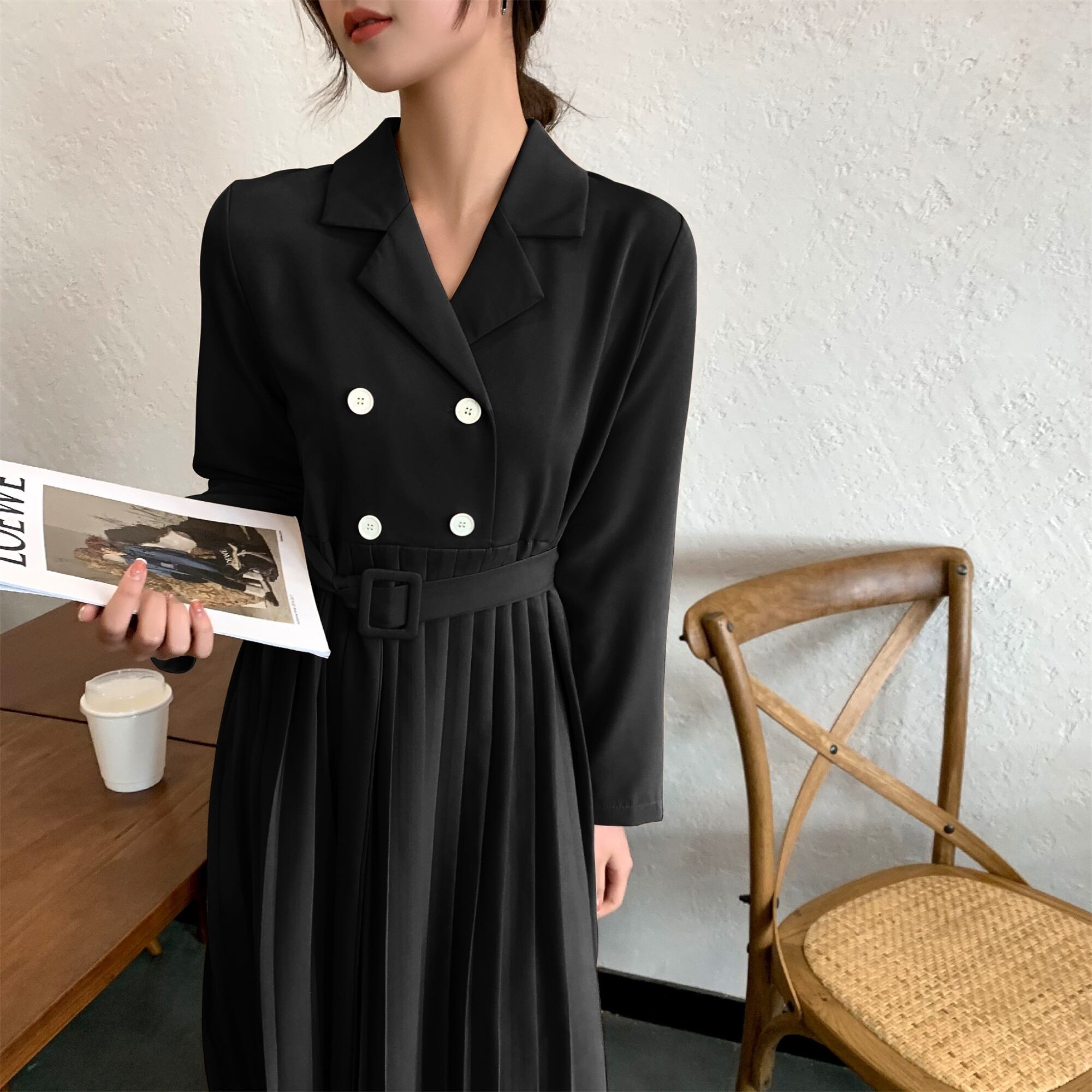 スプリングダブルブレストハイウェスト薄手スカート カラードレス レディース ロング 春物 韓国婦人46109456762