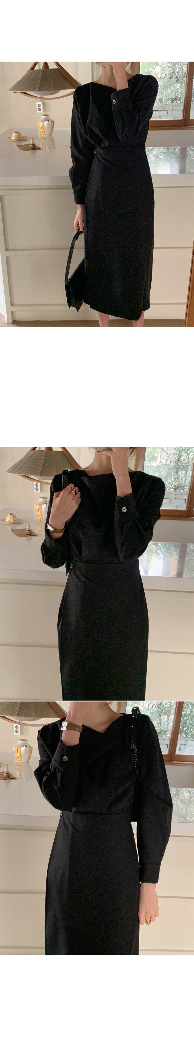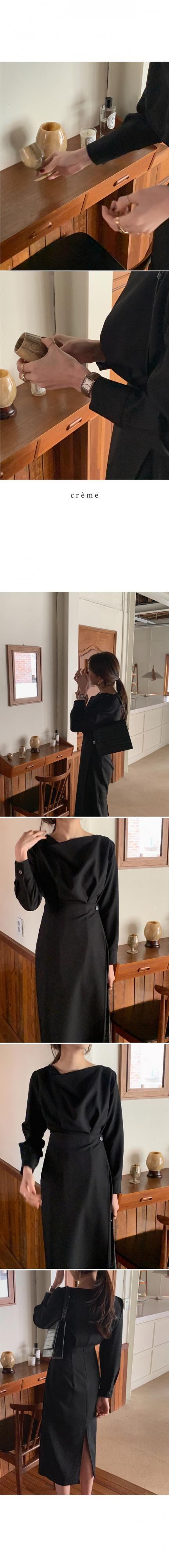 スプリングプリーツロング長袖スリーブドレス 春物 韓国婦人39802753023