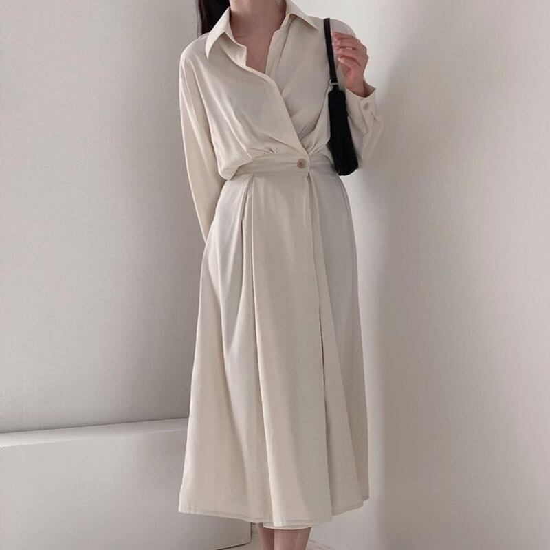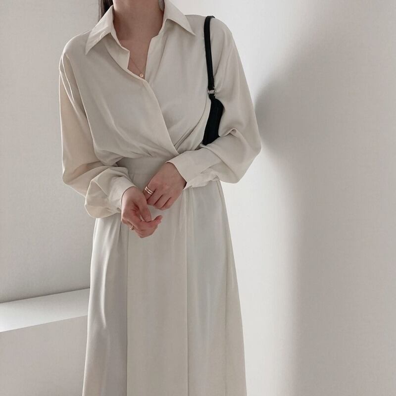 スプリングウェスト薄手ボタンシャツ ドレス ロングスカート 春物 韓国婦人77431743339