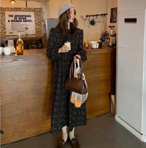 スタンダードドレス スプリングオータムフローラルスカート ロング レトロ 春物 秋物 花柄 韓国婦人61661759258