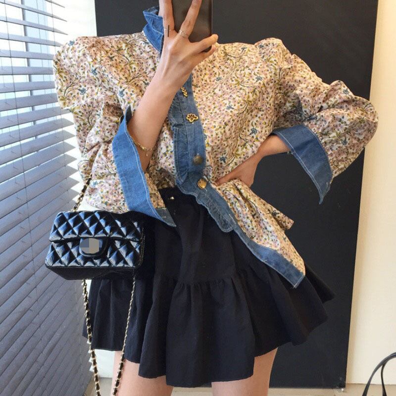 カラーシャツ ソリッド ハイウェストウェストスカート ソリッドカラー 韓国婦人5214837035