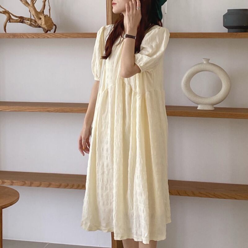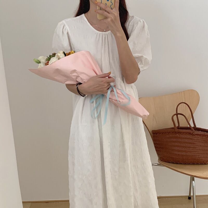 スタイルルーズスリーブラウンドネックドレス スプリングロングスカート 春物 Oネック 韓国婦人6980610494